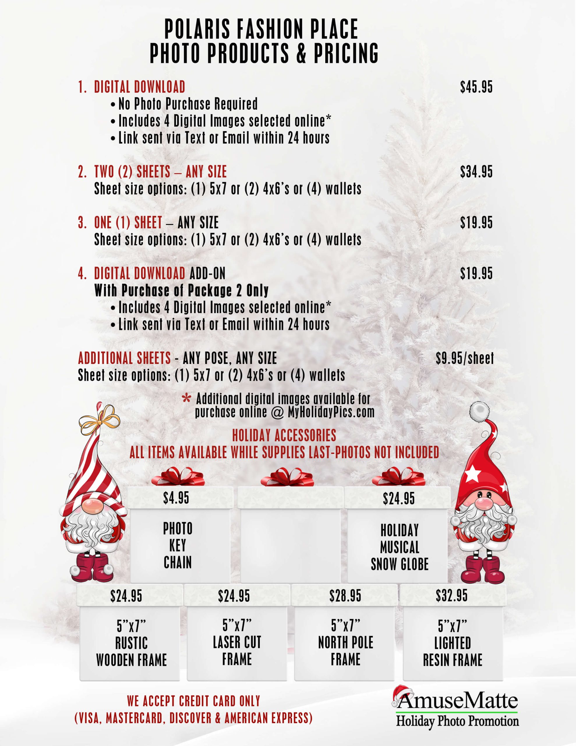 A $20 deposit is required at time of booking.  Your deposit includes your visit with Santa and a $20 credit towards your purchase of photos and/or digital download.