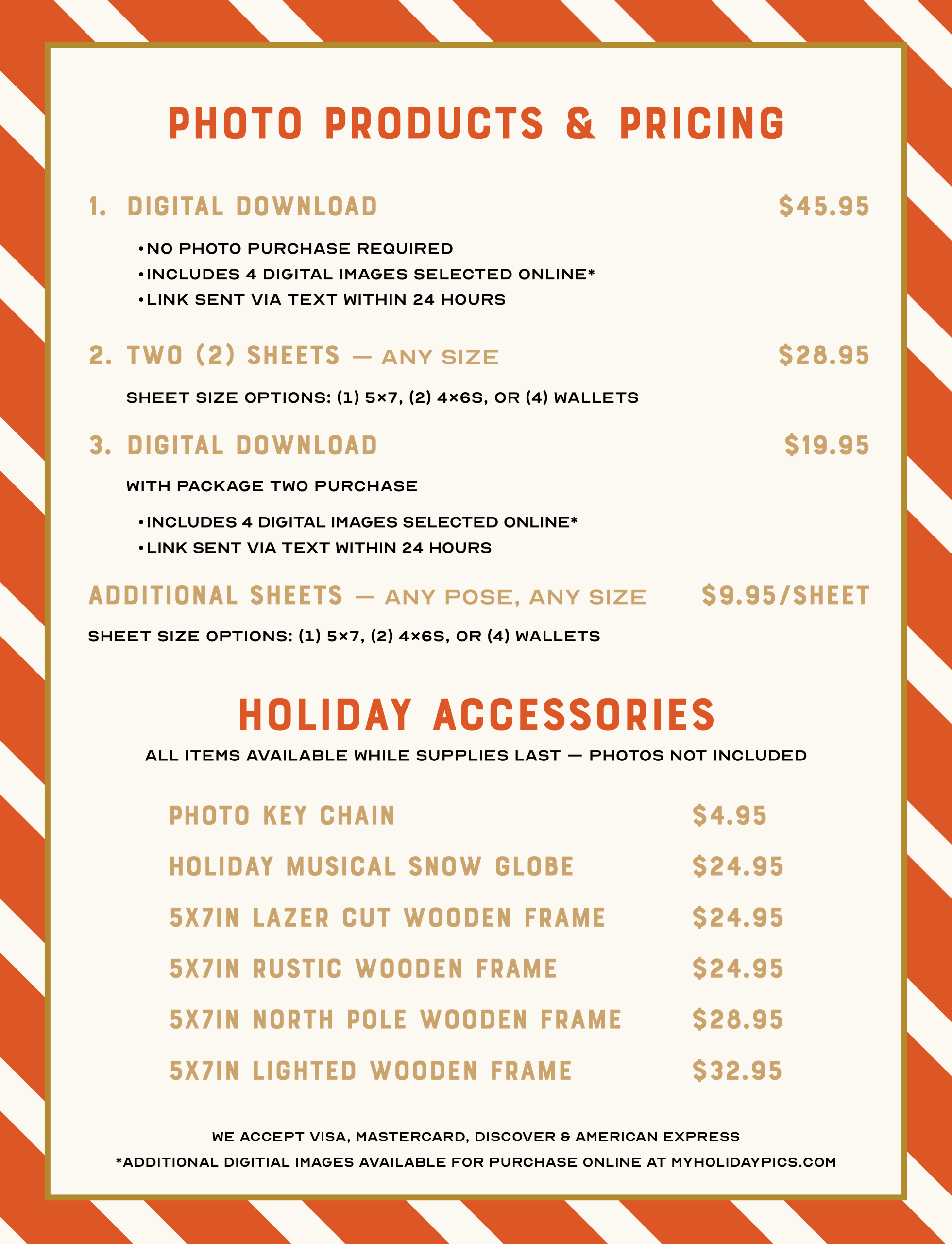 A $20 deposit is required at time of booking. Your deposit includes your visit with Santa and a $20 credit towards your purchase of photos and/or digital download.